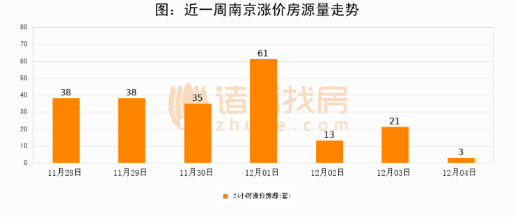 根据诸葛找房数据显示,南京24小时涨价房源量为3套,较12月03日减少18套,环比下降85.7%。与此同时,涨价房源占比小幅回落,对于购房者来说是一个入市窗口期,购房者可抓住时机入市。