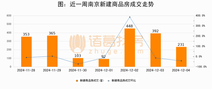 【南京成交日报】12月04日新房成交231套、二手房485套;涨价房源3套