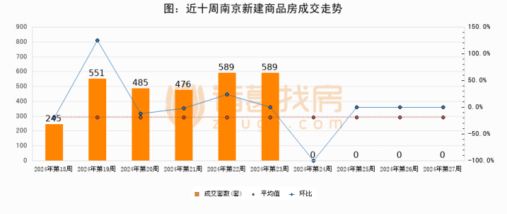 进入2024年第27周(07月01日-07月07日),南京新建商品房成交0套,较上周持平