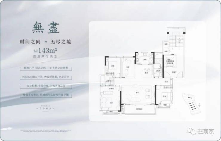 约143平米产品的定位叫“无尽之境”——如果你把户型图放大仔细观察,可以感受到匠心设计的顶层逻辑: