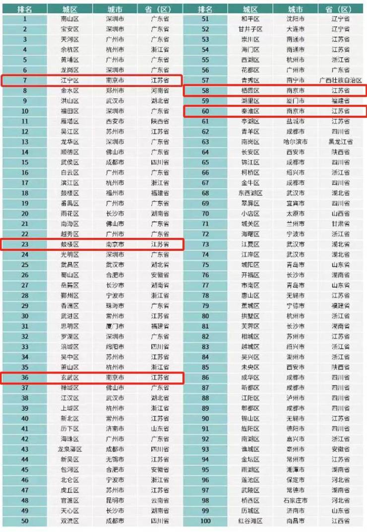 全国创新百强区榜单发布!南京5区上榜,江宁位列全国第七!