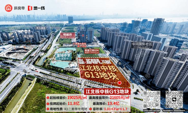 地块东南侧紧邻今年8月25日出让的江核G04地块,该地块由南京新居建设底价拿地,地块成交总价124000万元,楼面地价18404元/㎡。