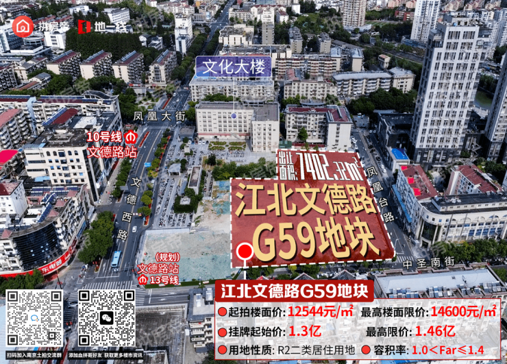 文德路G59地块位于浦口老城,紧邻地铁10号线文德路站,周边老旧小区云集,容积率≤1.4,意味着未来也是走多层、小高层路线,产品上市会引发地缘改善客的关注。