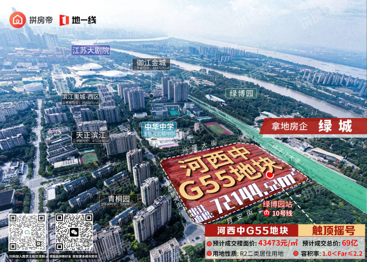 最终成交总价69亿,成交楼面价43473元/㎡!直接超越9月底出让的中海河西南G53地块(43253元/㎡),跃居成为南京楼面价第二贵地块,也是河西中楼面价最高的地块!