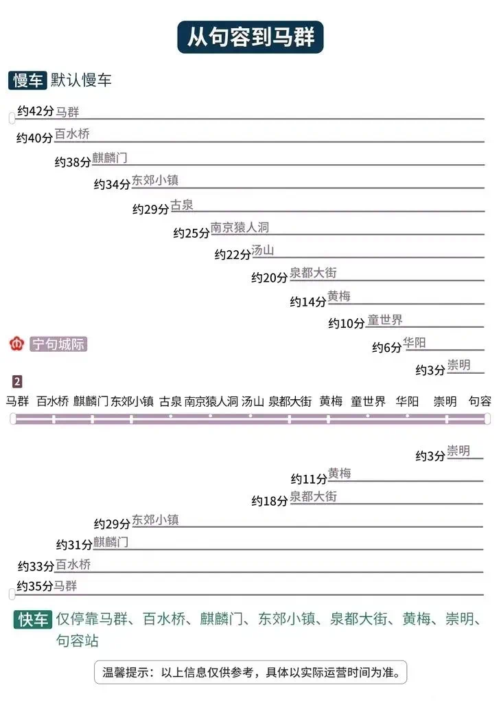 句容段各站点到马群要多长时间?