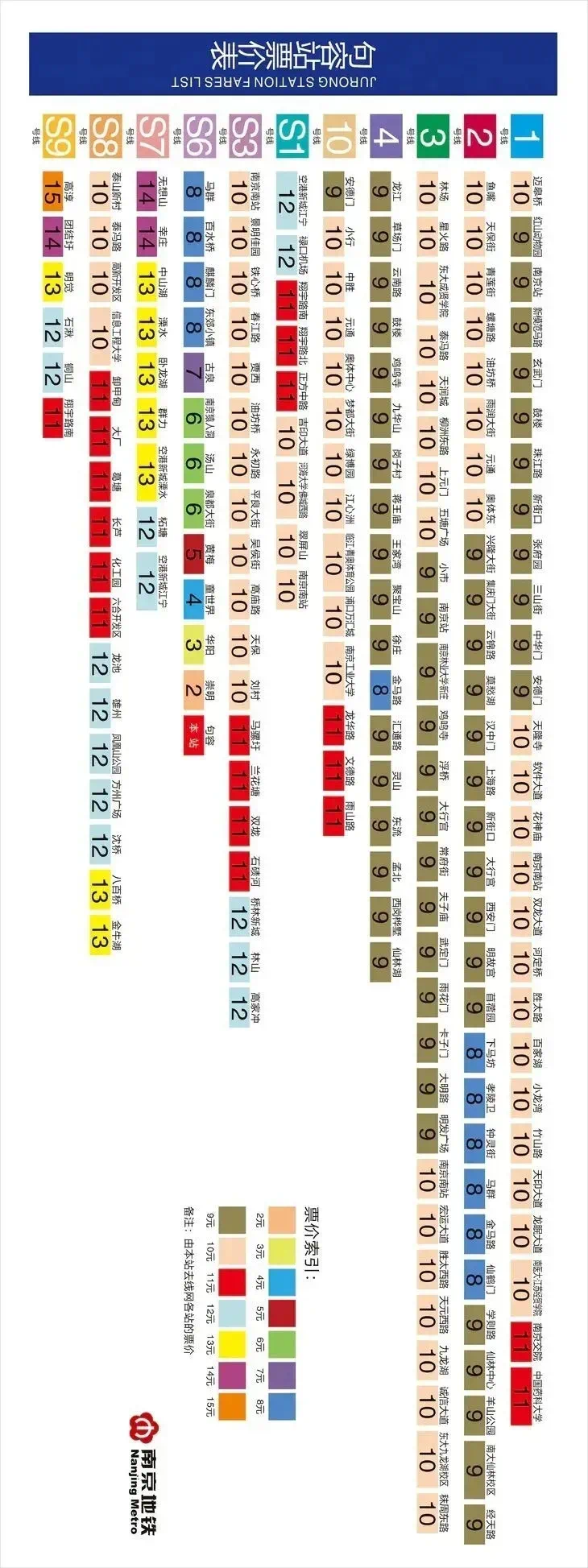 以下是句容段五个站点,到南京地铁所有站点的价目表,建议横屏浏览,票价信息一目了然。