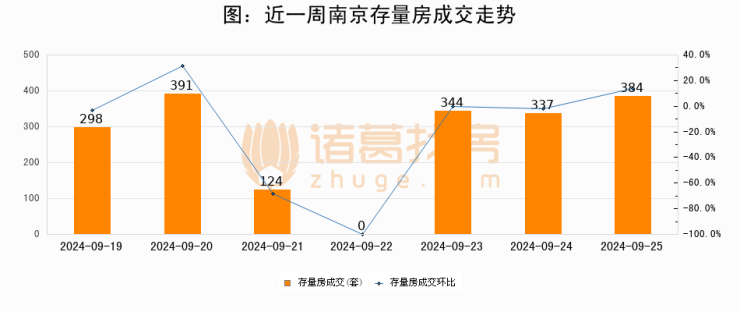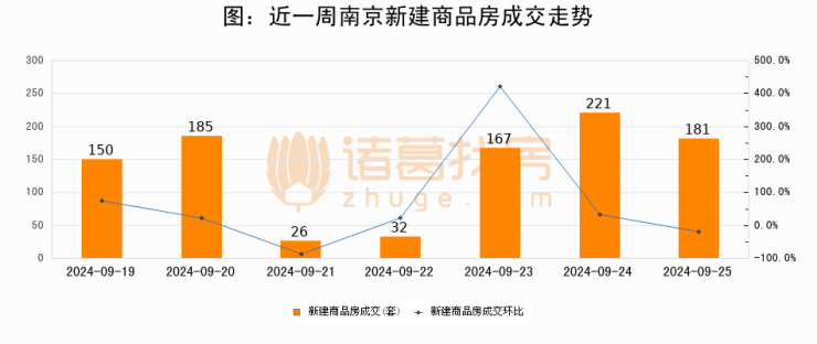 【南京成交日报】09月25日新房成交181套、二手房384套;涨价房源28套