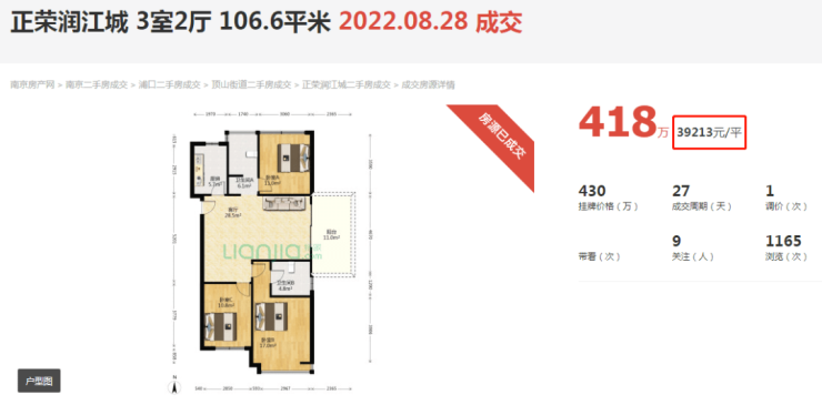 前不久,江核二手房标杆的正荣润江城成交了一套106.6平的三房,总价418万,单价仅3.9万/平!上一次润江城卖出这个价格,可能还是2019年。