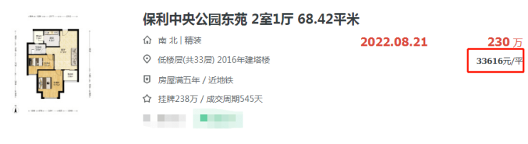 九龙湖的保利中央公园近期一套68.42平的房源竟以3.3万/平的价格成交,而此前同户型成交价基本在3.9万/平左右。