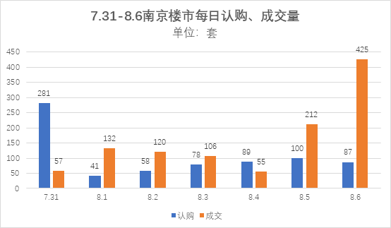 根据南京网上房地产数据显示,周末两天的认购和成交量分别达到100/212;87/425(套)。