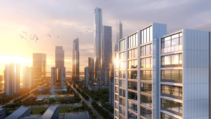 极简极粹的建筑语言,以现代流线、光幕质感,彰显河西鱼嘴的国际风范、业主的身份排面。