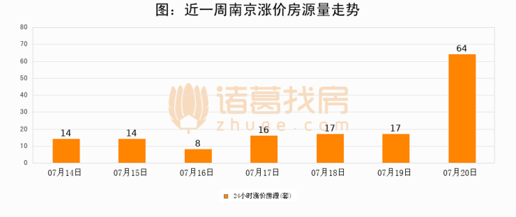 根据诸葛找房数据显示,南京24小时涨价房源量为64套,较07月19日增加47套,环比上涨276.5%。与此同时,涨价房源占比小幅扩大,业主信心有所提升。