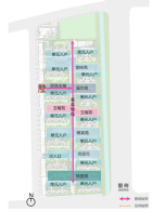滨江孔雀城内部两轴六苑规划设计,穿插小区而过,并将其划分为东西两个苑区,向南延伸包围小区的东西两侧。