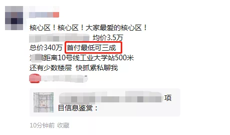 就在今天,江北核心区开分销的消息传遍了各大买房群,血拼姐也在不少中介的朋友圈中看到了该楼盘的推介信息,核心区、均价3万5、首付较低可三成,据说佣金6万。