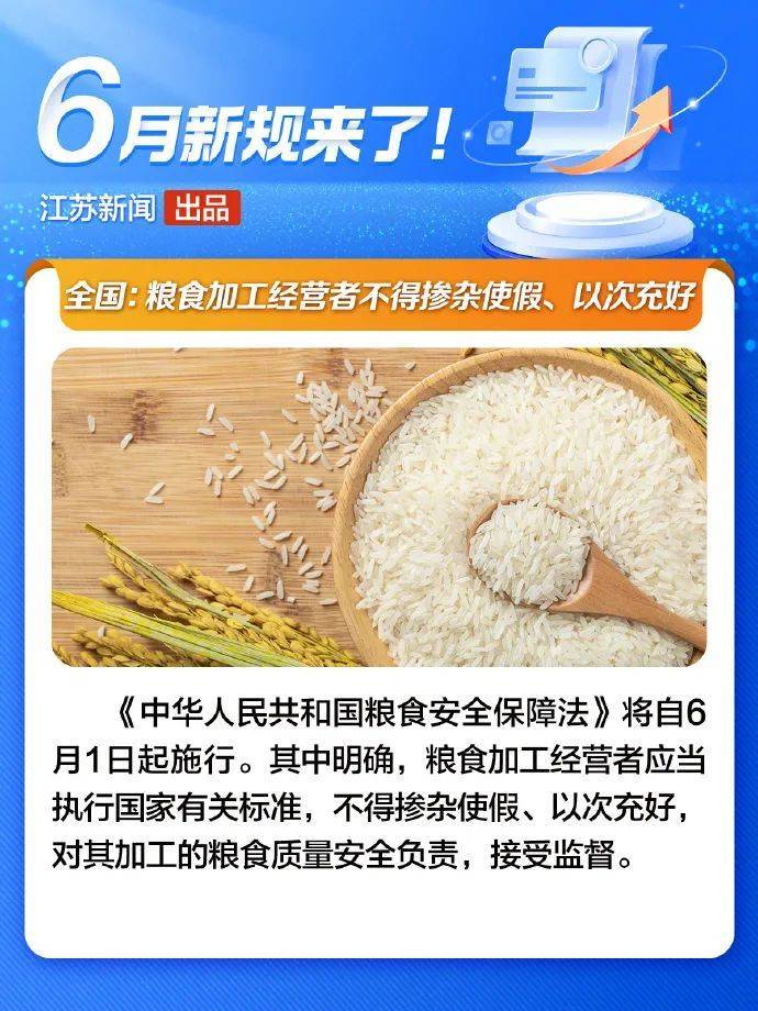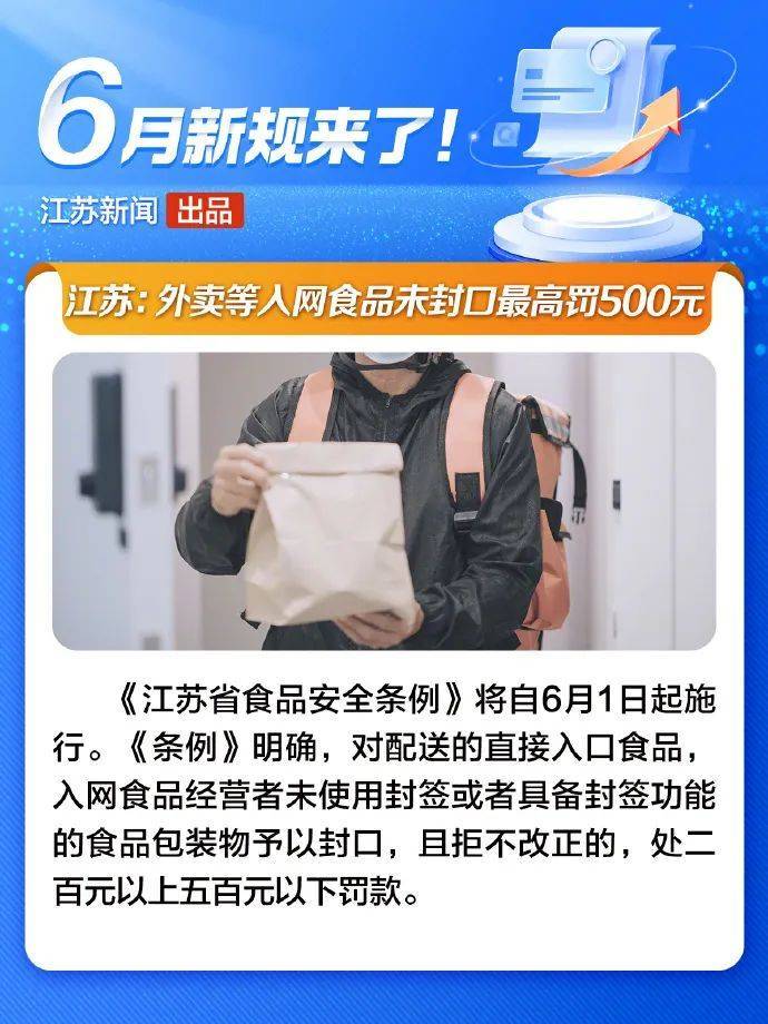 粮食加工不得掺杂使假、以次充好明令禁止的非法定计量单位不得使用外卖未封口最高罚500元……6月起这些新规来了!内容来源|江苏新闻…