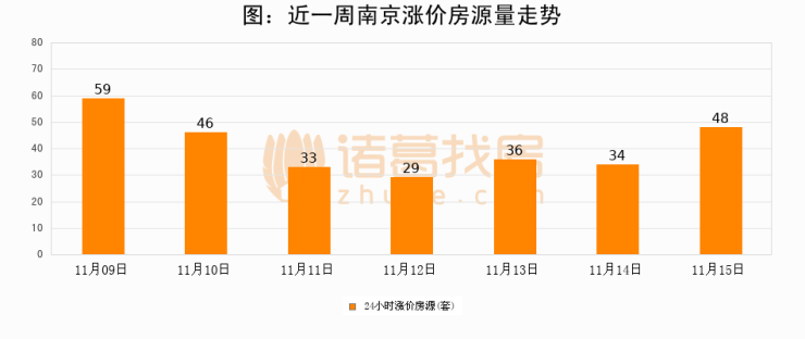 根据诸葛找房数据显示,南京24小时涨价房源量为48套,较11月14日增加14套,环比上涨41.2%。与此同时,涨价房源占比小幅扩大,业主信心有所提升。