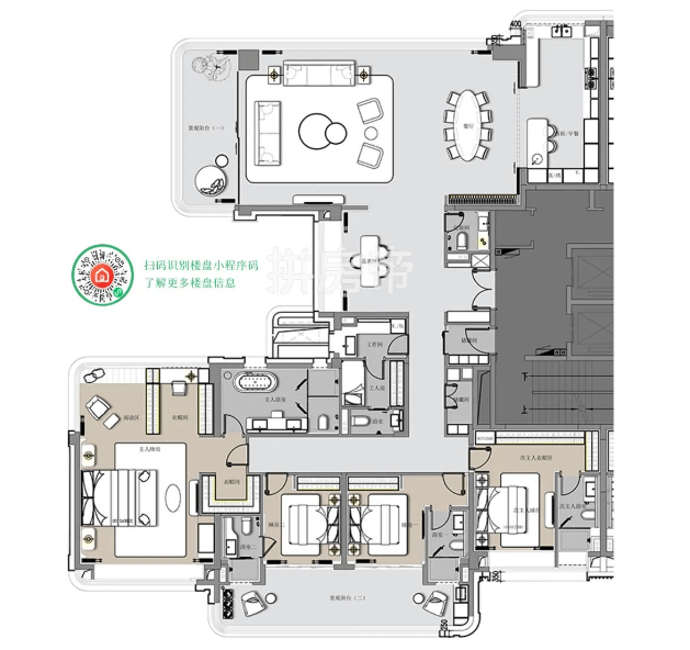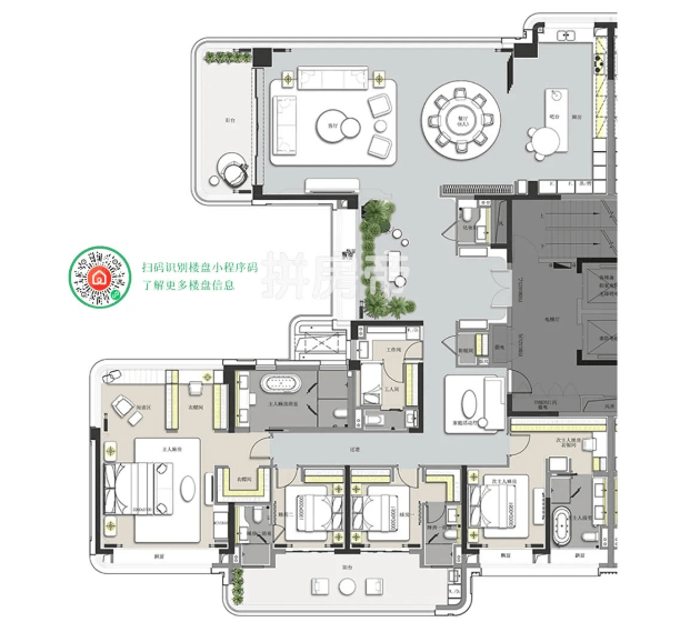 四居全套房+独立套房保姆间设计,主佣动线分离。