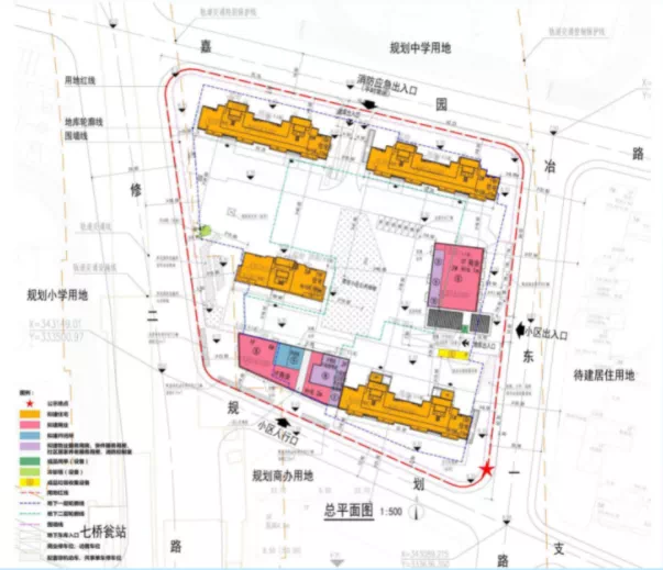 项目位于南部新城,西临冶修二路,东临冶东一路,南临应天东街,北临红花路。地块西侧为在建地铁5号线,西北角是七桥瓮站。