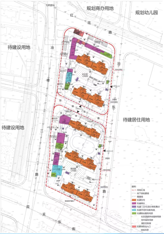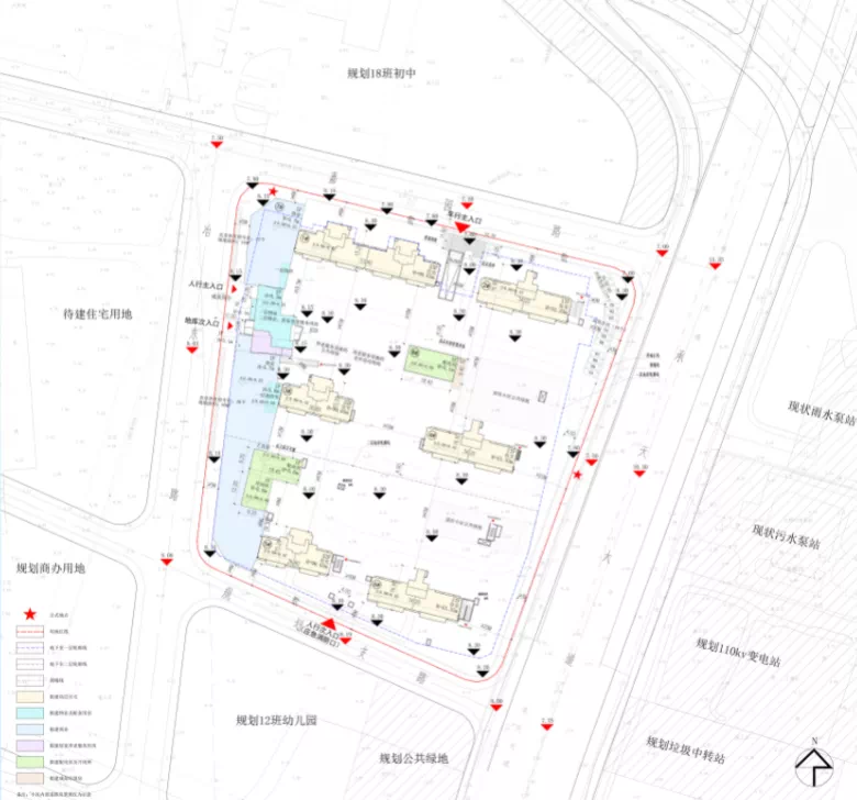 据规划,项目地上建筑面积约57198平方米,容积率约2.8,建筑密度约24%,建筑高度≤100m,绿地率≥30%;地下建筑面积约22171平方米,主要功能为配建停车库、人防设施及相关配套辅助用房。
