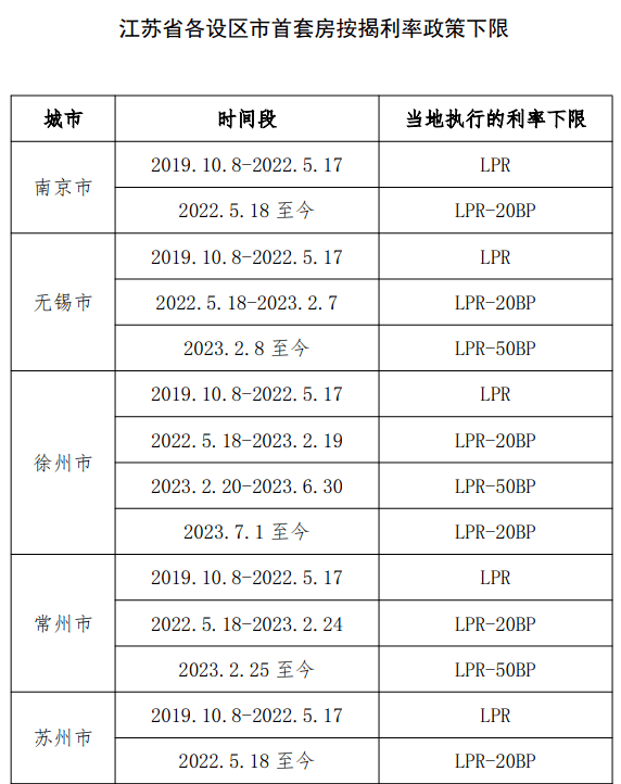 刚刚,中国人民银行江苏省分行,对外公布了江苏省内各城市首套房贷利率下限的历史调整情况。