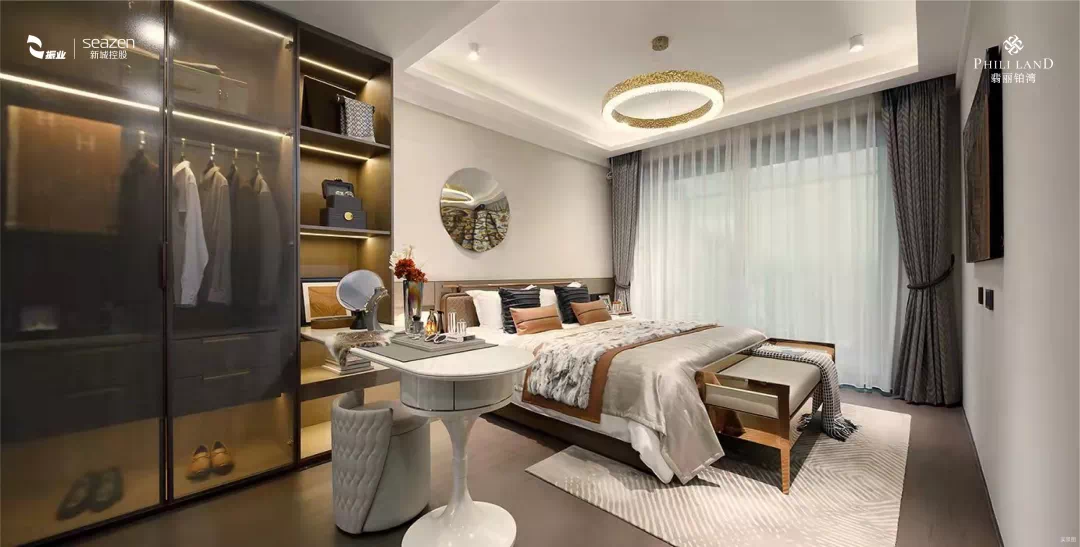 整个主卧为五星级酒店式套房设计,面积约25㎡,而且收纳空间非常充足。