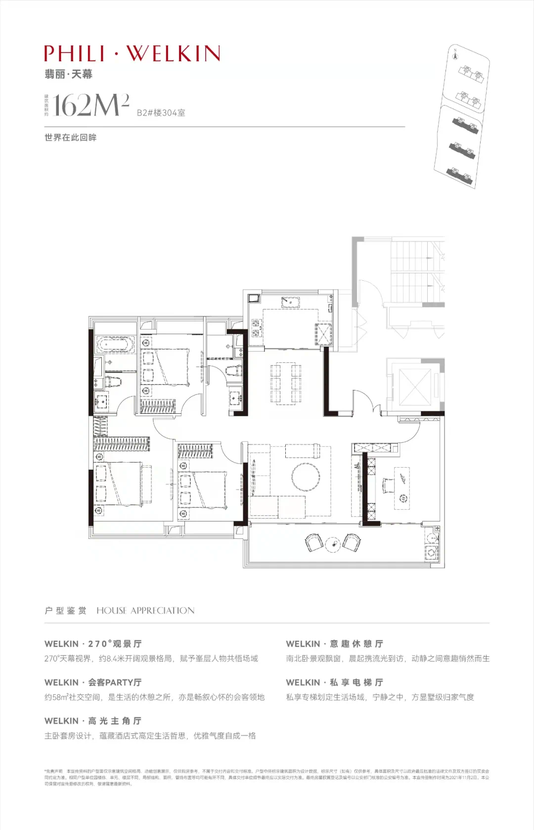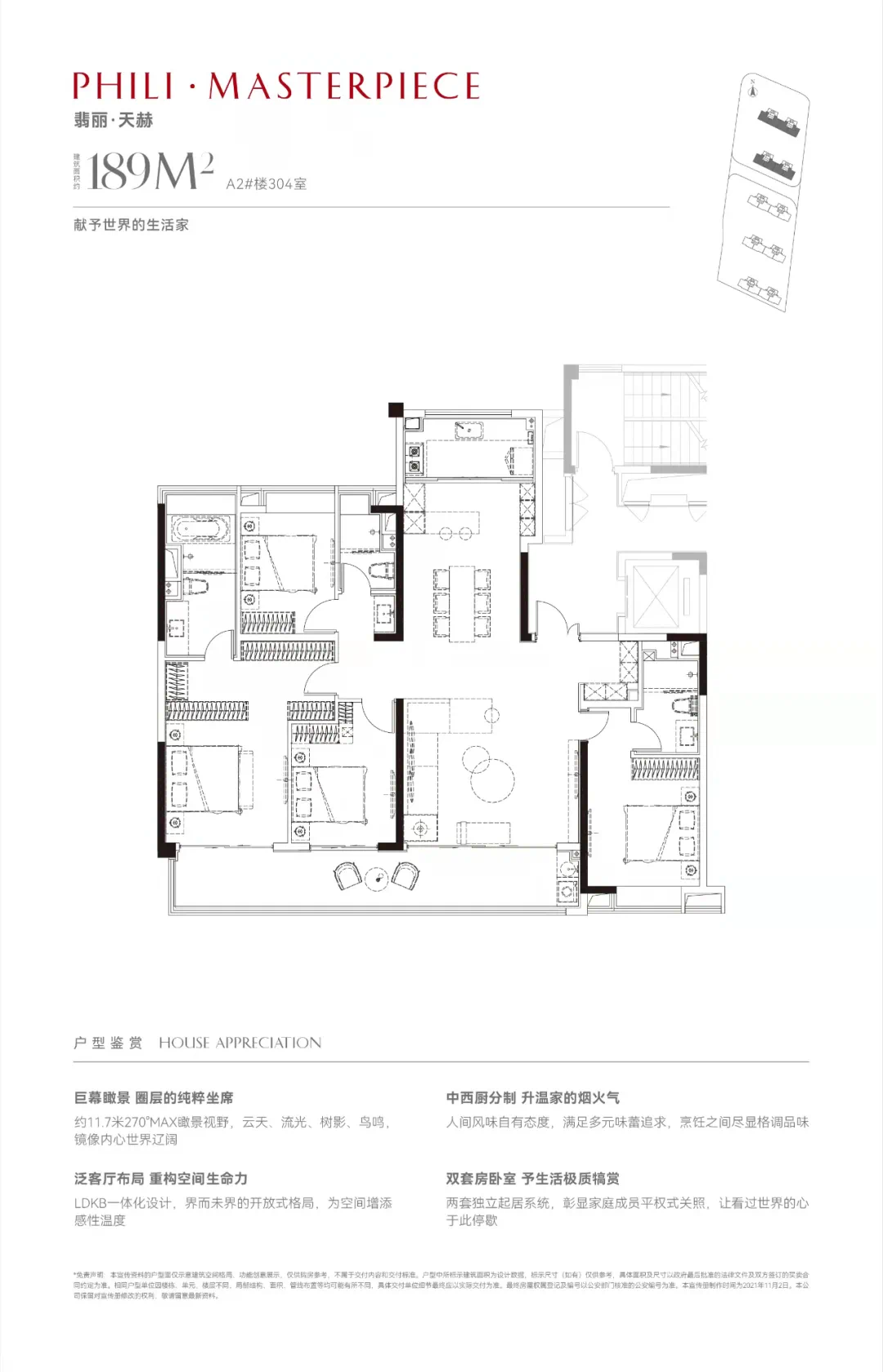 在户型打造方面同样也做到了纯粹,翡丽铂湾只有两种户型:建面约162㎡和189㎡。起步户型就直接拉高基本线,确保高端纯粹改善的奢宅定位,保证了圈层。