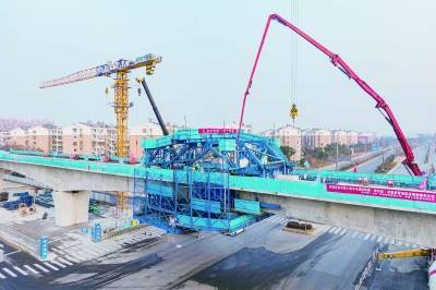 昨天下午,宁马城际铁路(南京段)首联悬臂浇筑连续梁在金港大道上空成功合龙,标志着该项目的施工进入了一个新的阶段,也为全线通车奠定了坚实的基础。通讯员德成左奇震宇南报网-南京日报/紫金山新闻记者崔晓摄…