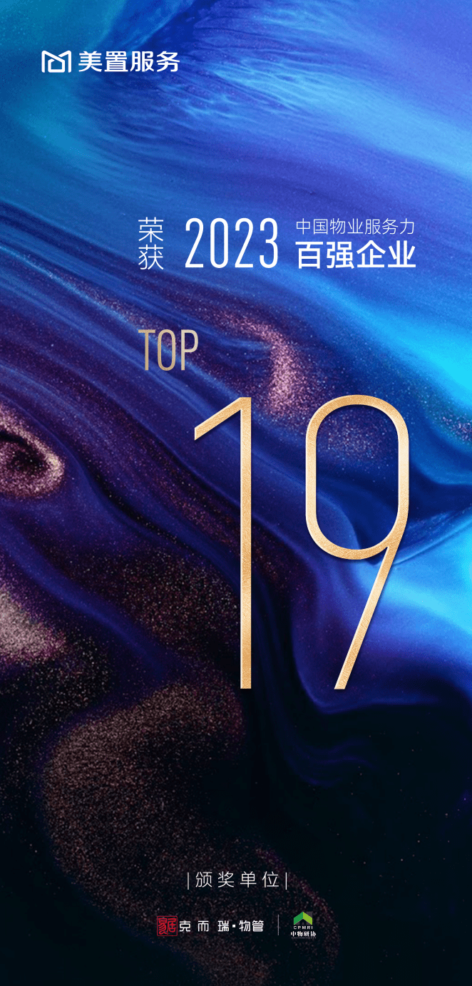 2023年9月1日,由克而瑞、中物研协主办的「2023中国物业服务力百强峰会暨品牌价值峰会」在上海开启,凭借卓越服务能力,美置服务荣膺2023中国物业服务力百强企业TOP19等系列荣誉。