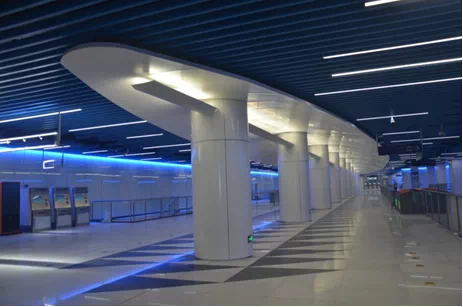 在建设过程中,2号线西延线注重与河西新城融合发展,车站装修采用装配式“半裸装”设计思路,形成了本线“追求自然·生态河西”的设计主题,彰显“自然生态•现代河西”新城魅力。