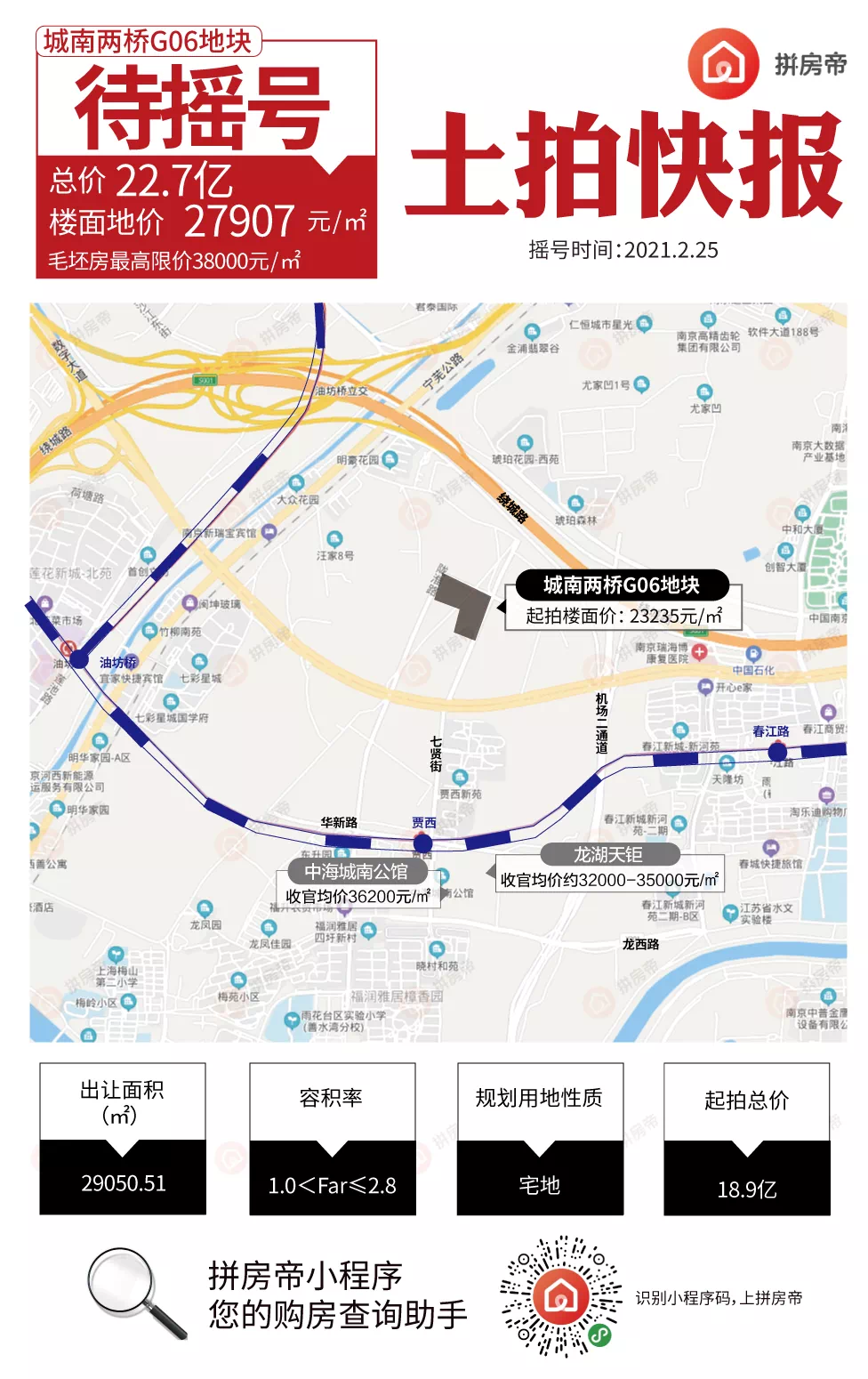 05城南两桥G06地块起拍楼面价:23235元/㎡较高楼面限价:27784元/㎡毛坯房销售限价:38000元/㎡
