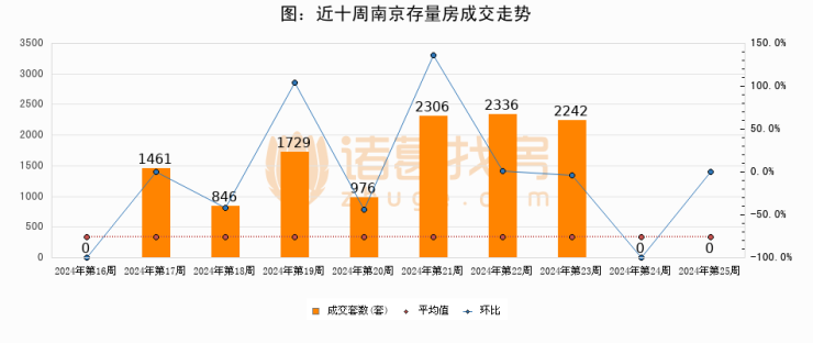 进入2024年第25周(06月17日-06月23日),南京新建商品房成交0套,较上周持平