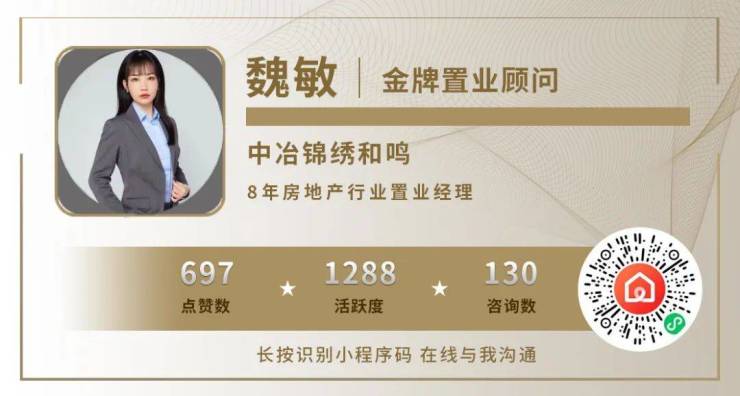 目前,中冶锦绣和鸣在售6#、10#楼房源,主力户型建面约89㎡和110㎡,首付约75万起!对项目感兴趣的朋友,抓紧联系项目置业顾问魏敏