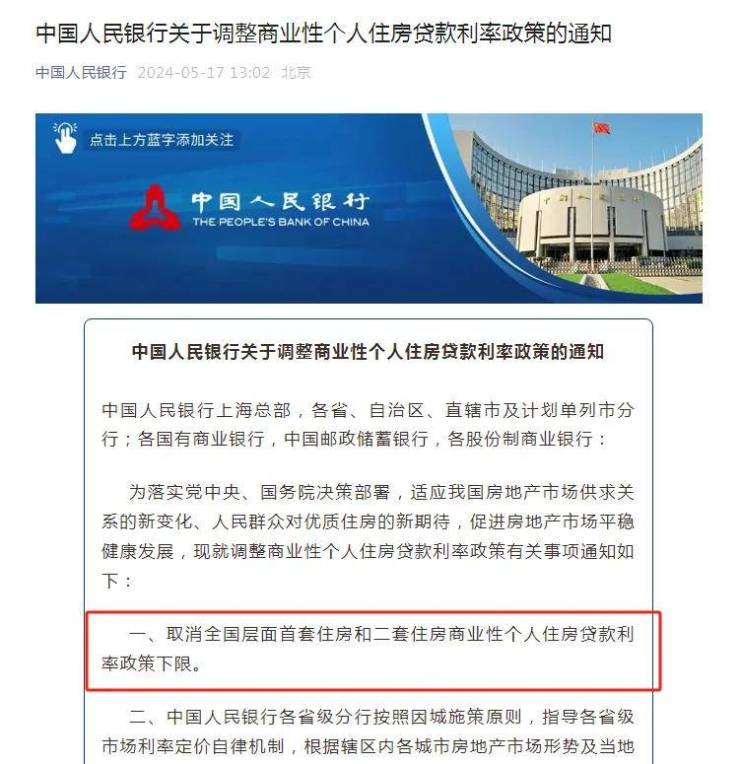 其中提到,取消全国层面首套住房和二套住房商业性个人住房贷款利率政策下限。