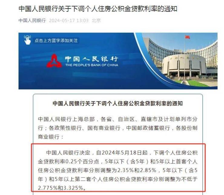 自2024年5月18日起,下调个人住房公积金贷款利率0.25个百分点,