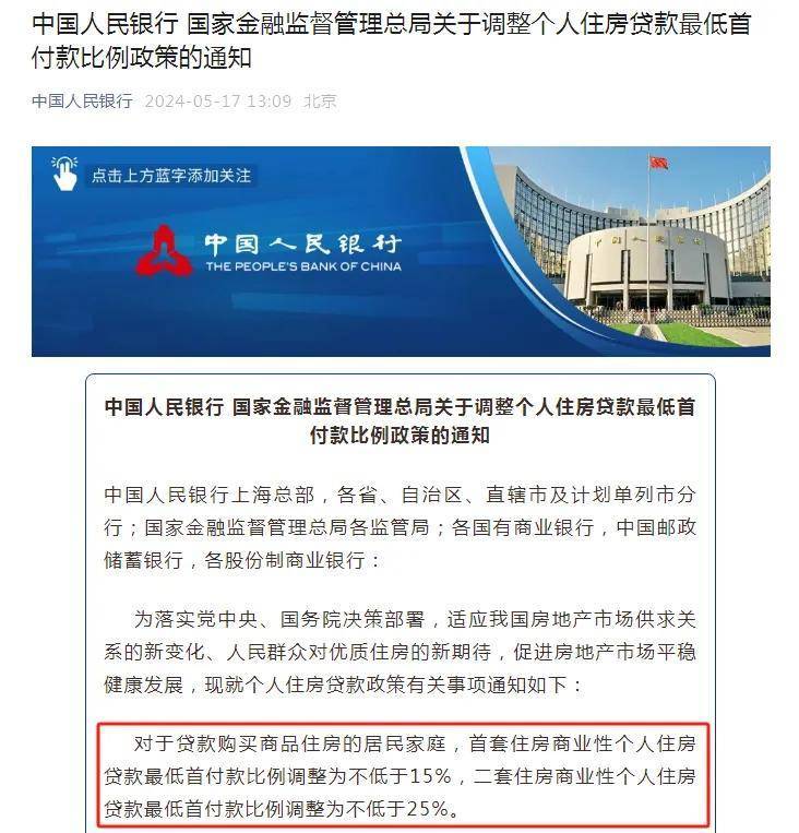两部门:首套住房商贷最低首付调整为不低于15% 二套商贷最低首付调整为不低于25%