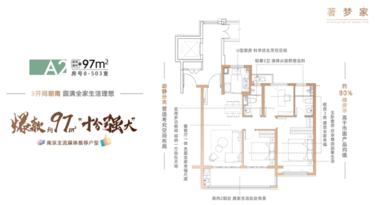 新城在行业内一直以创新的产品和服务为优势,设计的户型一直被外界称为“工科户型王”。随着居住需求的提升,南京楼市新盘户型越做越大,门槛极高,例如:江核的110㎡起,南部新城、河西新城140㎡起,在城市优质板块,小户型房源实属稀缺,因此新城振业·铭著风华约97㎡户型一经面世,便持续高热,稳坐城东畅销流量王宝座。