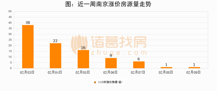 根据诸葛找房数据显示,南京24小时涨价房源量为1套,较02月08日持平。