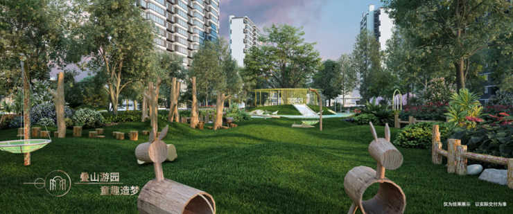 针对3-6岁的孩子,小区内设置亲子花园和森林剧场,满足孩子对异世界的向往,6-8岁的孩子则可以在丛林冒险乐园尽情玩耍,释放天性,分享交流。