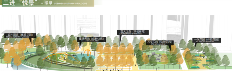 人生不断跨入新的阶段,人们对生活的需求也渐入不同境界,都会江来府在三色森林里构建嬉戏剧场、能量剧场、乐氧聚场、社交聚场4大聚场,聚合婴幼儿启蒙、快乐成长、健康起航、长者空间、景观会客厅等多元活动场所。点线结合各项功能设施合理分布在三进景观中,覆盖全龄段社区居民需求,打造理想人居范本。