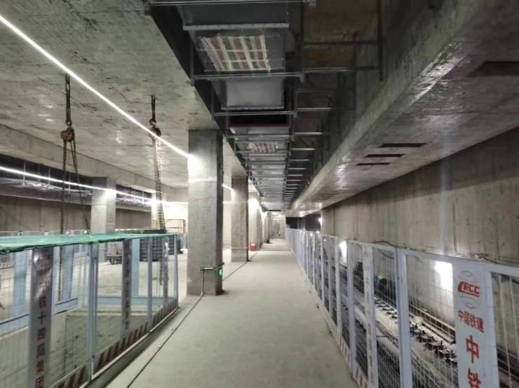 续建5号线北段。截至2024年6月,车站已完成所有围护结构和主体结构,正在施工附属结构,轨道铺设全部完成。车站、区间全面进入设备安装及装修阶段。