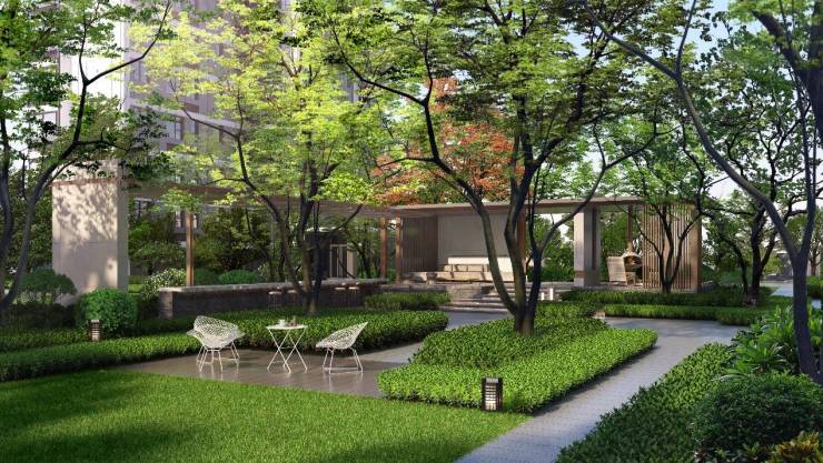 「金陵四季的诗意园林」。越秀南京和樾府的景观营造以《金陵四季图》为设计蓝本,以层、林、图、锦四大设计手法,层层铺排“两轴四园一带”, 不惜成本,珍选乌桕、榉树、香樟、朴树等名贵树种,多以全冠移植而来,打造约50米绿奢生活轴,于呼吸间感受四季流转。定制宅间花园,诗意栖居“水/谷/涧/林/光/丘/溪/影”八大场景,构筑全龄“荟玩”社区,共享式花园社交,让每一处景观自然而然的沉浸于生活日常。