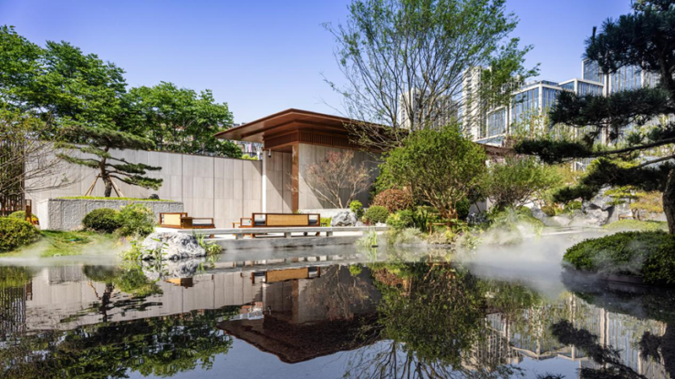 特别打造了青云堂、舞墨庭、菇云庭、魁星阁、明书堂五重园景,以现代的设计手法,重现传统文化的中式门、堂、楼、阁、庭的空间序列,用以匹配人们对于礼、序、和、境、乐的居住和社交需求。