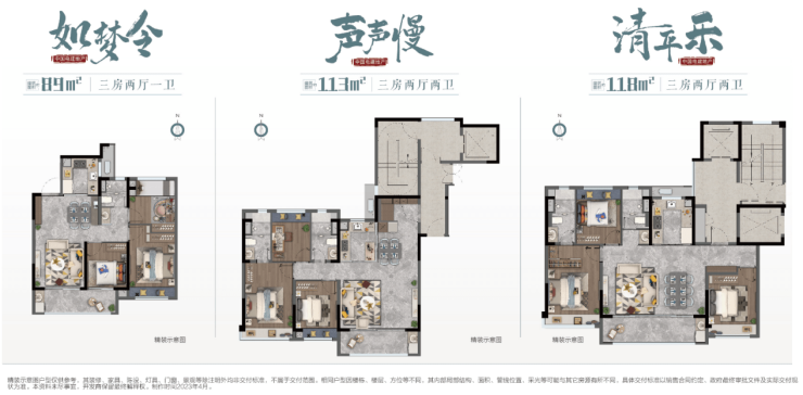 4#共推出102套建筑面积约89-113㎡三房户型房源,创新高性能收纳系统(89户型入户玄关柜、113户型玄关800库),让家越住越大。更值得一提的是这栋楼正对宋风园林景观,坐拥更大的楼间距、更好的采光和视野。