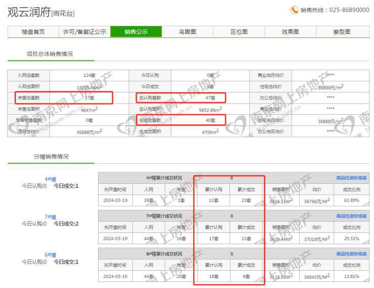 目前观云润府入网124套房源,已认购47套,成交40套,仅剩37套未售,在雨核竞争如此激烈的环境下,这个成绩还算不错。