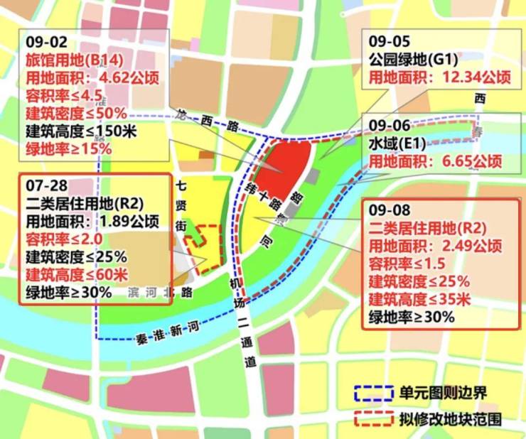 09-08 地块用地性质由商办混合用地(Bb)调整为二类居住用地(R2),用地面积由 4.17公顷调整为2.49公顷,容积率由≤5.0 调整为≤1.5,建筑密度由≤40%调整为≤25%,建筑高度由≤150 米调整为≤35 米。