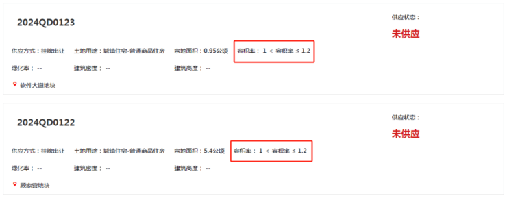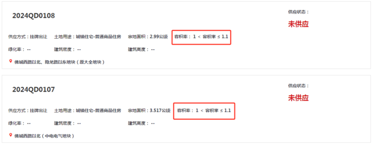 江宁佛城西路的两幅地块容积率更是低至1.1!