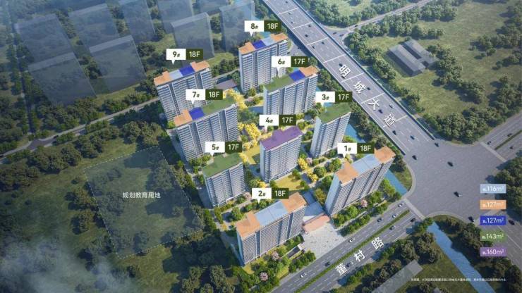 百家湖的纯新盘中建源上九里已经正式对外公开,项目规划建设9栋17-18F小高层,主力户型建面约115、127、140、160㎡。