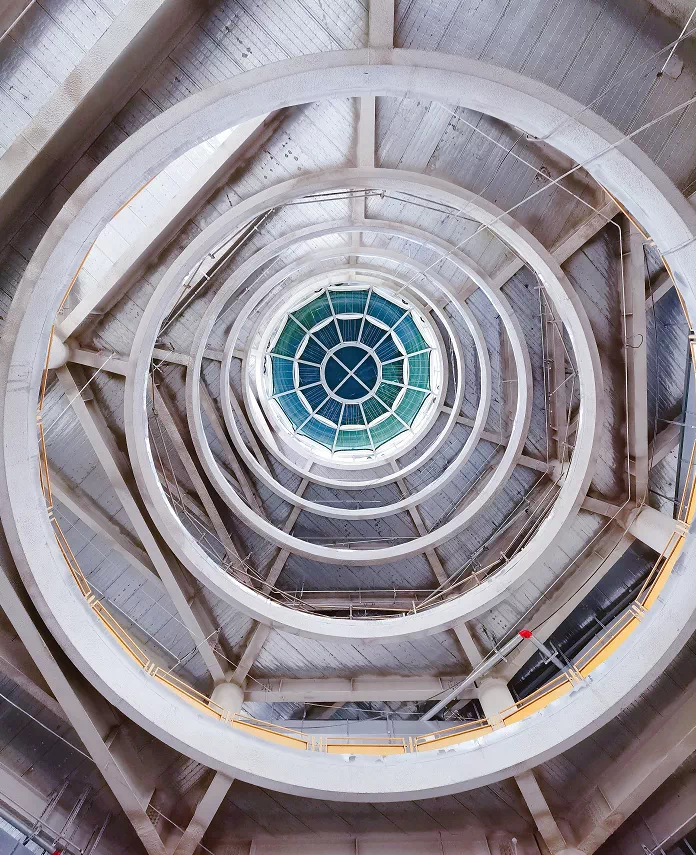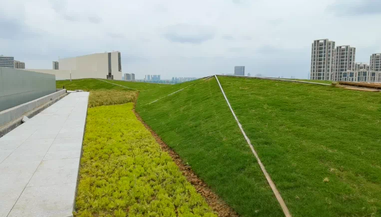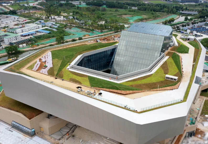▍大厅从四楼再往上走,就是楼顶的空中花园,这里有起伏的绿植造型,曲折的石板路,未来必将是江北的明星打卡地。