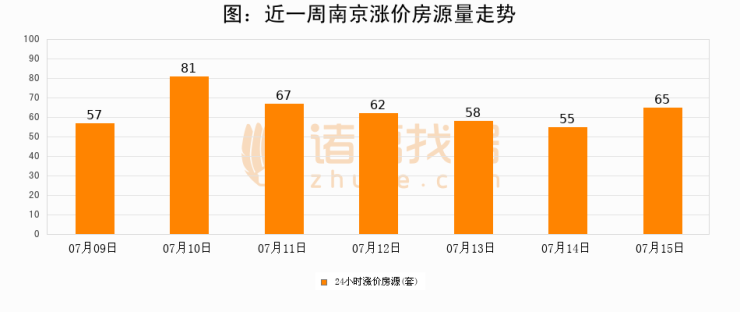 根据诸葛找房数据显示,南京24小时涨价房源量为65套,较07月14日增加10套,环比上涨18.2%。与此同时,涨价房源占比小幅扩大,业主信心有所提升。