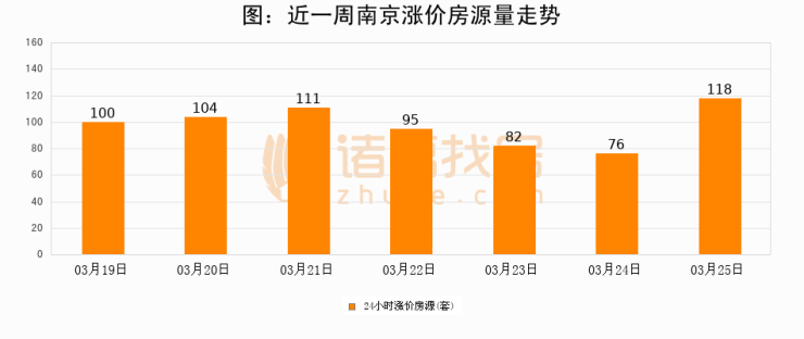 根据诸葛找房数据显示,南京24小时涨价房源量为118套,较03月24日增加42套,环比上涨55.3%。与此同时,涨价房源占比小幅扩大,业主信心有所提升。